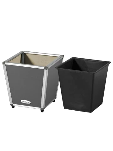 Die Design Pflanzkübel gehören zur neuen Serie PUR. Es handelt sich um dekorative Pflanzgefäße, die Sie innen und außen aufstellen können. Die Materialien sind Polyurethan, Aluminium und Fiberglas. Der Überzug aus Kunstleder (Polyurethan) setzt ein Statement für modernes Wohnen.Die verschiedenen Größen der Serie ermöglichen eine höchst individuelle Gestaltung Ihrer Terrasse und/oder des angrenzenden Wohnzimmers mit Pflanzkübeln in einheitlichem Design, einer von Ihnen gewählten Farbe und Größe, die zum umgebenden Ambiente passen.Setzen Sie auf Ihrer Terrasse, im Garten und im Haus dekorative Akzente mit der Serie PUR, die sehr hochwertig aus Fiberglas mit Kunstleder und einer Aluminiumkante gefertigt wurden. Die verfügbaren Farben sind echte Trendsetter, während das Material äußerst pflegeleicht ist: Abwischen genügt!Sie werden sich ewig an den Pflanzkübeln erfreuen. Sollten einmal stärkere Verschmutzungen auftreten, verwenden Sie zum Reinigen etwas Seifenwasser oder fettlösende Reinigungsmittel sowie eine weichere Bürste. Das Fiberglas ist absolut splitterfrei und daher auch bei einem (kaum erwartbaren) Bruch absolut sicher. Da es sehr leicht ist, können Sie Ihre Pflanzkübel problemlos heben oder verschieben. Der Einsatz aus Kunststoff ist wasserdicht und lässt sich schnell außerhalb des Kübels bepflanzen. Genießen Sie Ihr neues Interieur mit diesen Pflanzkübeln. – Herausnehmbarer wasserdichter Kunststoffeinsatz. – Allumschließende Aluminiumkanten mit Eckschutz und Gummifüßen. – Individuelle Gestaltungsmöglichkeiten, die sich in jede Raumplanung farblich und stilsicher integrieren lassen. – Splitterfreies Fiberglas – Hohe Standfestigkeit und leichte Handhabung durch geringes Eigengewicht.