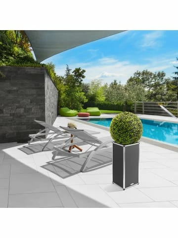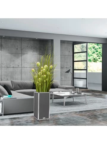 Die Design Pflanzkübel gehören zur neuen Serie PUR. Es handelt sich um dekorative Pflanzgefäße, die Sie innen und außen aufstellen können. Die Materialien sind Polyurethan, Aluminium und Fiberglas. Der Überzug aus Kunstleder (Polyurethan) setzt ein Statement für modernes Wohnen.Die verschiedenen Größen der Serie ermöglichen eine höchst individuelle Gestaltung Ihrer Terrasse und/oder des angrenzenden Wohnzimmers mit Pflanzkübeln in einheitlichem Design, einer von Ihnen gewählten Farbe und Größe, die zum umgebenden Ambiente passen.Setzen Sie auf Ihrer Terrasse, im Garten und im Haus dekorative Akzente mit der Serie PUR, die sehr hochwertig aus Fiberglas mit Kunstleder und einer Aluminiumkante gefertigt wurden. Die verfügbaren Farben sind echte Trendsetter, während das Material äußerst pflegeleicht ist: Abwischen genügt!Sie werden sich ewig an den Pflanzkübeln erfreuen. Sollten einmal stärkere Verschmutzungen auftreten, verwenden Sie zum Reinigen etwas Seifenwasser oder fettlösende Reinigungsmittel sowie eine weichere Bürste. Das Fiberglas ist absolut splitterfrei und daher auch bei einem (kaum erwartbaren) Bruch absolut sicher. Da es sehr leicht ist, können Sie Ihre Pflanzkübel problemlos heben oder verschieben. Der Einsatz aus Kunststoff ist wasserdicht und lässt sich schnell außerhalb des Kübels bepflanzen. Genießen Sie Ihr neues Interieur mit diesen Pflanzkübeln. – Allumschließende Aluminiumkanten mit Eckschutz und Gummifüßen. – Individuelle Gestaltungsmöglichkeiten, die sich in jede Raumplanung farblich und stilsicher integrieren lassen. – Herausnehmbarer wasserdichter Kunststoffeinsatz. – Hohe Standfestigkeit und leichte Handhabung durch geringes Eigengewicht. – Splitterfreies Fiberglas