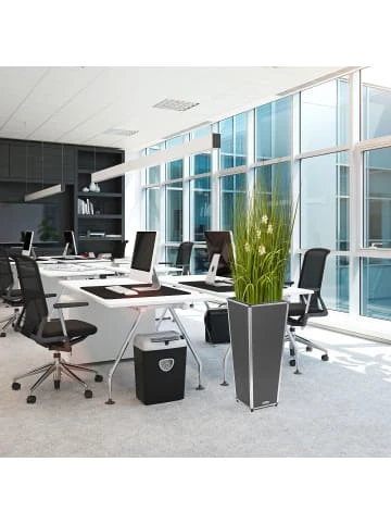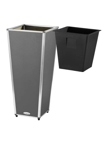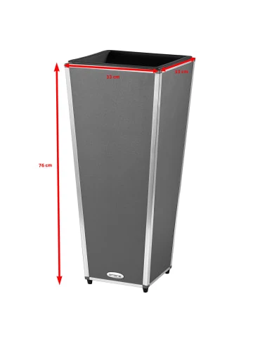 Die Design Pflanzkübel gehören zur neuen Serie PUR. Es handelt sich um dekorative Pflanzgefäße, die Sie innen und außen aufstellen können. Die Materialien sind Polyurethan, Aluminium und Fiberglas. Der Überzug aus Kunstleder (Polyurethan) setzt ein Statement für modernes Wohnen.Die verschiedenen Größen der Serie ermöglichen eine höchst individuelle Gestaltung Ihrer Terrasse und/oder des angrenzenden Wohnzimmers mit Pflanzkübeln in einheitlichem Design, einer von Ihnen gewählten Farbe und Größe, die zum umgebenden Ambiente passen.Setzen Sie auf Ihrer Terrasse, im Garten und im Haus dekorative Akzente mit der Serie PUR, die sehr hochwertig aus Fiberglas mit Kunstleder und einer Aluminiumkante gefertigt wurden. Die verfügbaren Farben sind echte Trendsetter, während das Material äußerst pflegeleicht ist: Abwischen genügt!Sie werden sich ewig an den Pflanzkübeln erfreuen. Sollten einmal stärkere Verschmutzungen auftreten, verwenden Sie zum Reinigen etwas Seifenwasser oder fettlösende Reinigungsmittel sowie eine weichere Bürste. Das Fiberglas ist absolut splitterfrei und daher auch bei einem (kaum erwartbaren) Bruch absolut sicher. Da es sehr leicht ist, können Sie Ihre Pflanzkübel problemlos heben oder verschieben. Der Einsatz aus Kunststoff ist wasserdicht und lässt sich schnell außerhalb des Kübels bepflanzen. Genießen Sie Ihr neues Interieur mit diesen Pflanzkübeln. – Allumschließende Aluminiumkanten mit Eckschutz und Gummifüßen. – Individuelle Gestaltungsmöglichkeiten, die sich in jede Raumplanung farblich und stilsicher integrieren lassen. – Herausnehmbarer wasserdichter Kunststoffeinsatz. – Hohe Standfestigkeit und leichte Handhabung durch geringes Eigengewicht. – Splitterfreies Fiberglas
