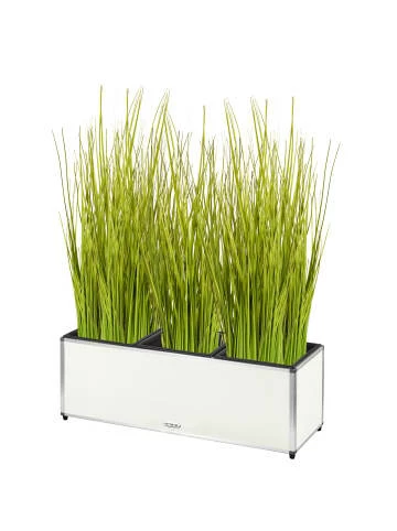 Die Design Pflanzkübel gehören zur neuen Serie PUR. Es handelt sich um dekorative Pflanzgefäße, die Sie innen und außen aufstellen können. Die Materialien sind Polyurethan, Aluminium und Fiberglas. Der Überzug aus Kunstleder (Polyurethan) setzt ein Statement für modernes Wohnen.Die verschiedenen Größen der Serie ermöglichen eine höchst individuelle Gestaltung Ihrer Terrasse und/oder des angrenzenden Wohnzimmers mit Pflanzkübeln in einheitlichem Design, einer von Ihnen gewählten Farbe und Größe, die zum umgebenden Ambiente passen.Setzen Sie auf Ihrer Terrasse, im Garten und im Haus dekorative Akzente mit der Serie PUR, die sehr hochwertig aus Fiberglas mit Kunstleder und einer Aluminiumkante gefertigt wurden. Die verfügbaren Farben sind echte Trendsetter, während das Material äußerst pflegeleicht ist: Abwischen genügt!Sie werden sich ewig an den Pflanzkübeln erfreuen. Sollten einmal stärkere Verschmutzungen auftreten, verwenden Sie zum Reinigen etwas Seifenwasser oder fettlösende Reinigungsmittel sowie eine weichere Bürste. Das Fiberglas ist absolut splitterfrei und daher auch bei einem (kaum erwartbaren) Bruch absolut sicher. Da es sehr leicht ist, können Sie Ihre Pflanzkübel problemlos heben oder verschieben. Der Einsatz aus Kunststoff ist wasserdicht und lässt sich schnell außerhalb des Kübels bepflanzen. Genießen Sie Ihr neues Interieur mit diesen Pflanzkübeln. – Allumschließende Aluminiumkanten mit Eckschutz und Gummifüßen. – Individuelle Gestaltungsmöglichkeiten, die sich in jede Raumplanung farblich und stilsicher integrieren lassen. – Herausnehmbarer wasserdichter Kunststoffeinsatz. – Hohe Standfestigkeit und leichte Handhabung durch geringes Eigengewicht. – Splitterfreies Fiberglas