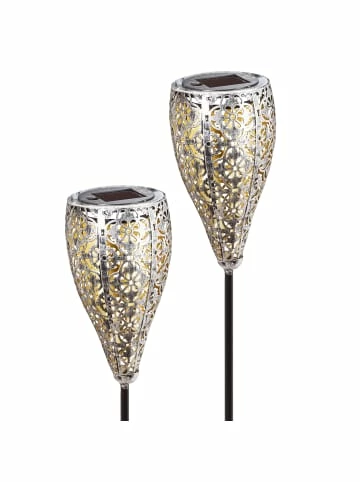 Besorgen 🔔 Garten & Balkon AMARE Solar LED Dekostecker 2er Set Metall Kelch KABELLOS In Silber Günstig Kaufen ✔️