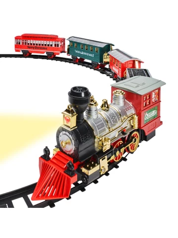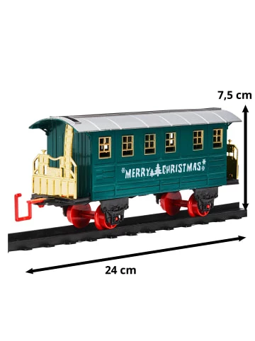 Tauchen Sie die Kinder dieses Weihnachten in eine Welt voller Spaß und Fantasie ein – mit unserem tollen Spielzeugeisenbahn-Set. Schaffen Sie die perfekte festliche Atmosphäre, indem Sie Schienen um Ihren Baum oder andere Dekorationen legen und dann zusehen, wie sie hindurch sausen! Das 22-teilige Set wird komplett mit allen notwendigen Komponenten für ein unvergessliches Erlebnis geliefert – es ist nie zu früh, um mit der Planung zu beginnen. – Holen Sie sich den Zauber von Weihnachten nach Hause mit diesem festlichen Spielzeugeisenbahn-Set. – Lassen Sie der Fantasie Ihrer Kleinen freien Lauf, wenn sie ihre eigenen Abenteuer rund um den Baum erleben. – 22 Teile bedeuten stundenlangen Spaß für Kinder jeden Alters. – Ideal für Freitagabende nach der Schule oder in den Winterferien. – Im Set enthalten sind: 1 Lock, 3 Wagons, 1 Kohlewagen und 17 Gleisteile für 90 cm Wegstrecke