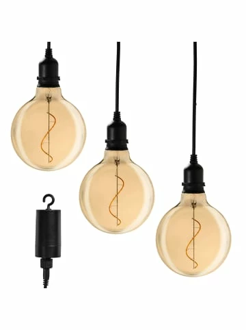 Dieses bezaubernde Set aus 3 leuchtenden Kugeln wird Ihren Alltag erhellen und jeden Raum wohnlicher machen. Die Kugeln mit einem Durchmesser von 12,5 Zentimetern eignen sich perfekt für den Einsatz drinnen oder draußen.Die einen Meter lange Zuleitung sorgt dafür, dass die Kugeln nah genug sind, um jeden Winkel zu beleuchten.Material: Glas MetallFür den Innen- und (geschützten) AußenbereichDurchmesser: ca. 12,5 cm mit Linksgewinde IP44 Batteriefach inkl. 4 x AA Batterien ( Zuleitung 1m ) – Hängeleuchte Glow sorgt für ein stimmungsvolles Ambiente – Mit 6/18h Timer- Funktion oder Dauerbetrieb ausgestattet – 3er Set Glaskugel Glow Außenbereich geeignet – Zuleitung einen Meter – Für eine dekorative und festlicher Beleuchtung.