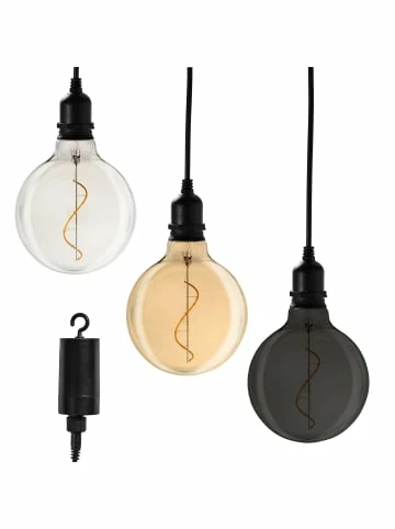 Dieses bezaubernde Set aus 3 leuchtenden Kugeln wird Ihren Alltag erhellen und jeden Raum wohnlicher machen. Die Kugeln mit einem Durchmesser von 12,5 Zentimetern eignen sich perfekt für den Einsatz drinnen oder draußen.Die einen Meter lange Zuleitung sorgt dafür, dass die Kugeln nah genug sind, um jeden Winkel zu beleuchten.Material: Glas MetallFür den Innen- und (geschützten) AußenbereichDurchmesser: ca. 12,5 cm mit Linksgewinde IP44 Batteriefach inkl. 4 x AA Batterien ( Zuleitung 1m ) – Hängeleuchte Glow sorgt für ein stimmungsvolles Ambiente – Mit 6/18h Timer- Funktion oder Dauerbetrieb ausgestattet – 3er Set Glaskugel Glow Außenbereich geeignet – Zuleitung einen Meter – Für eine dekorative und festlicher Beleuchtung.