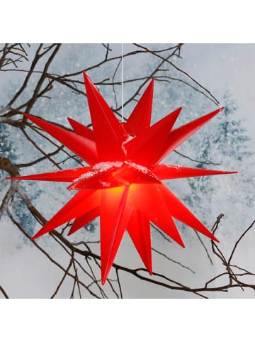 LED 3D Außenstern rot ca. 57 x 48 x 44 (B x H x T), warmweiß, für den Innen- und Außenbereich, mit Timer – Außenbeleuchtung – Weihnachten – Anzahl der LEDs: 6. Gesamtlänge der Kette in m: ca. 7,5. – Durch die IP44-Schutzklasse ist der Stern neben dem Innenbereich auch für den Schmuck Ihrer Außenfassade geeignet und ist somit auch spritzwassergeschützt. – Für Innen & Außen – Nach Betätigung der Timer-Funktion schaltet sich der Artikel ein und wird sich jeden Tag zur gleichen Uhrzeit automatisch erneut einschalten und nach 6 Stunden wieder ausschalten.