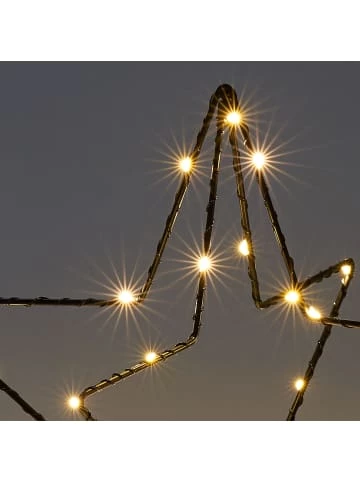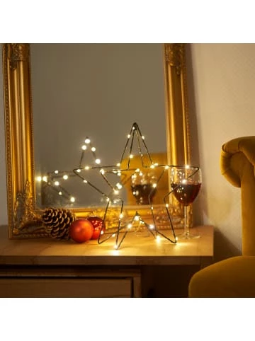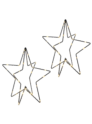 Wunderschöne LED Metalldekoration für den Innenbereich. Das 2-er Set von AMARE ist ein echter Hingucker und sorgt für ein tolles, weihnachtliches Ambiente in Ihrem Haus. Aufgrund seines Materials ist es extrem pflegeleicht und leicht zu reinigen. Es verfügt über einen 6-h Timer, sodass es sich jeden Tag zur gleichen Uhrzeit ein- und wieder abschaltet. Entdecken Sie unsere weiteren AMARE LED-Artikel, die sich wunderbar mit diesem Produkt kombinieren lassen! • Maße in cm: ca. H 29 x B 30. • Material: Metall (pulverbeschichtet), Kunststoff, Kupfer. • Länge der Zuleitung in cm: ca. 30. Durchmesser der Zuleitung in mm: ca. 1,6. Kupferquerschnitt der Zuleitung in mm²: ca. 0,2. Durchmesser des Einzeldrahtes in mm: ca. 0,4. Kupferquerschnitt des Einzeldrahtes in mm²: ca. 0,12. Kupferanteil in %: 100. • Art der Schaltung: parallel (nur die defekte LED fällt aus). • LED-Farbe: warmweiß. • Anzahl der LEDs: 30. • Batteriefach: Innen-Batteriefach mit ON / OFF / 6h Timer-Funktion. Nach Betätigung der Timer-Funktion wird sich der Artikel jeden Tag automatisch zur gleichen Uhrzeit erneut einschalten und nach 6 Stunden wieder ausschalten. • Leistung der LEDs: 30 x 3 V / 0,06 W. Gesamtleistung: 4.5 V DC 0,5 W; 3 x 1.5 V LR6 (AA). – Das LED Sterne 2-er Set von AMARE ist ein echter Hingucker! Es überzeugt mit einem modernen Design und sorgt für ein wunderschönes weihnachtliches Ambiente in Ihrem Haushalt. – Das Set ist aufgrund seines Materials extrem pflegeleicht und leicht zu säubern. Sollte es mal dreckig werden, genügt ein einfaches Abwischen mit einem feuchten Tuch. – Die Metall Sterne sind batteriebetrieben und verfügen über eine 6h Timer-Funktion, wodurch sie sich jeden Tag zur gleichen Uhrzeit automatisch ein- und ausschalten. – Das Set lässt sich wunderbar mit weiteren weihnachtlichen AMARE LED-Produkten kombinieren. Schauen Sie sich um, bei uns werden Sie garantiert fündig! – Die Abmessungen betragen ca. H 30 cm x B 30 cm, die Länge der Zuleitung beträgt ca. 30 cm