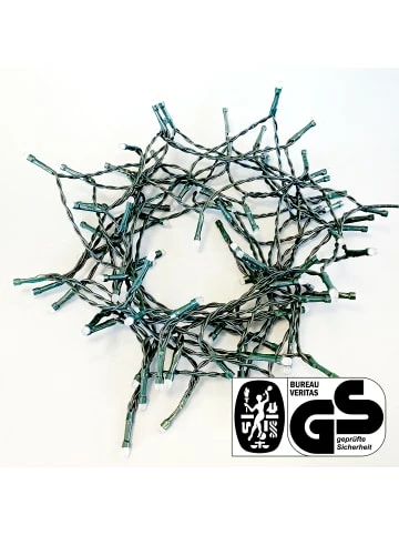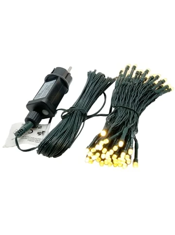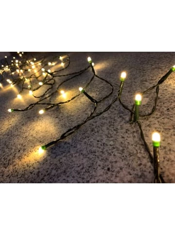 80 LED Lichterkette warmweiß Länge 7,90 m (zzgl. 10 m Zuleitung), für den Innen- und Außenbereich, Timer – Nach Betätigung der Timer-Funktion schaltet sich der Artikel ein und wird sich jeden Tag zur gleichen Uhrzeit automatisch erneut einschalten und nach 6 Stunden wieder ausschalten – Durch die IP44-Schutzklasse ist die Lichterkette neben dem Innenbereich auch für den Schmuck Ihrer Außenfassade geeignet und ist somit auch spritzwassergeschützt. – Gesamtlänge der Kette in m: ca. 7,90 (ohne Zuleitung).Länge der Zuleitung in m: ca. 10.Anzahl der LEDs je Kette: 80. – Für eine dekorative und festlicher Beleuchtung. – Für Innen & Außen