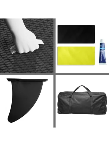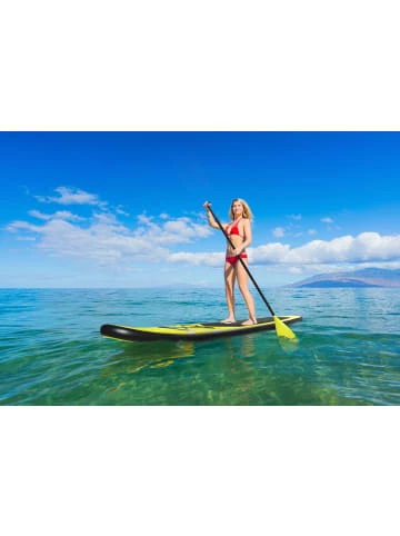 Sind Sie auf der Suche nach einer neuen Art, Spaß in der freien Natur zu haben? Das AMARE Stand Up Paddling Board ist mehr als nur ein gewöhnliches Sportgerät. Es verbindet Ihre Outdoor-Abenteuer mit einem Rundum-Vergnügen und macht dieses Stand Up Paddling Board perfekt, egal ob auf dem Land oder im Wasser. Das robuste Set enthält eine leistungsstarke Doppelhubkolbenpumpe, ein verstellbares EVA-Paddel und eine Spiralschnur. Mit dieser einfach zu bedienenden Pumpe kommen Sie schnell und sicher aufs Wasser.Damit Du das gesamte Equipment problemlos ans Wasser transportieren kannst, liefern wir das Set mit einer komfortablen Transporttasche.Das Board hat aufgeblasen eine Länge von 285 cm, besitzt eine Breite von 71 cm und bietet damit genügend Fläche, um stabil auf dem Wasser paddeln zu können. Die vorhandene Fußlasche und die Finne sorgen für sichere Kippstabilität auf dem Wasser. Der Außenbereich des Boards ist mit EVA-Material verstärkt, damit Du lange Freude an dem SUP hast. Maximale Beladung des Boards: 100 kg – Inkl. Tasche, Pumpe, Paddel, Surf-Leash – Das Board ist kippstabil und sowohl für Anfänger als auch Fortgeschrittene geeignet – Mit diesem robusten aufblasbaren SUP fühlen Sie sich wie auf einem harten Board – Belastbarkeit bis zu 100 kg – Das Board hat aufgeblasen eine Länge von 285 cm
